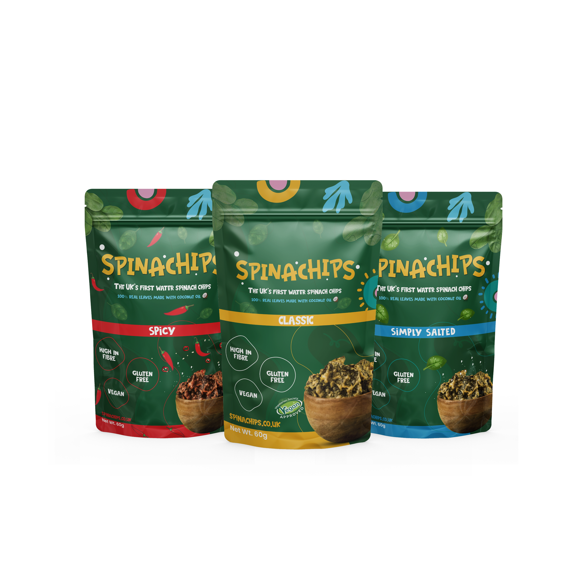 The Original Sampler brings together our three founding flavours — the ones that started the Spinachips movement. Made from 100% whole water-spinach leaves, lightly battered in chickpea flour and tapioca starch, then cooked in pure coconut oil for that light, crispy crunch.